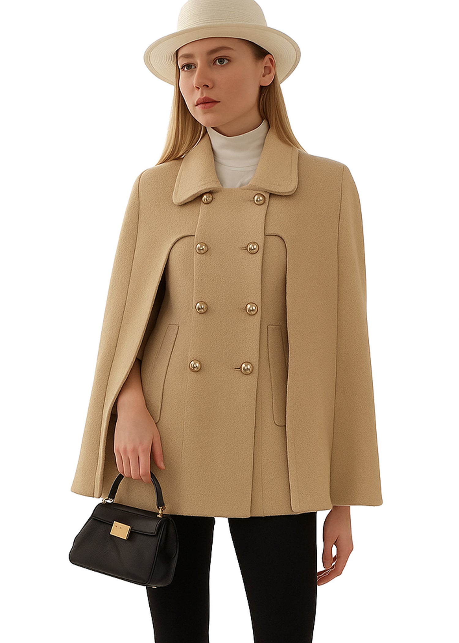 Elevate everyday elegance with our camel poncho cape coat for ladies—crafted for confidence, comfort, and commanding style.