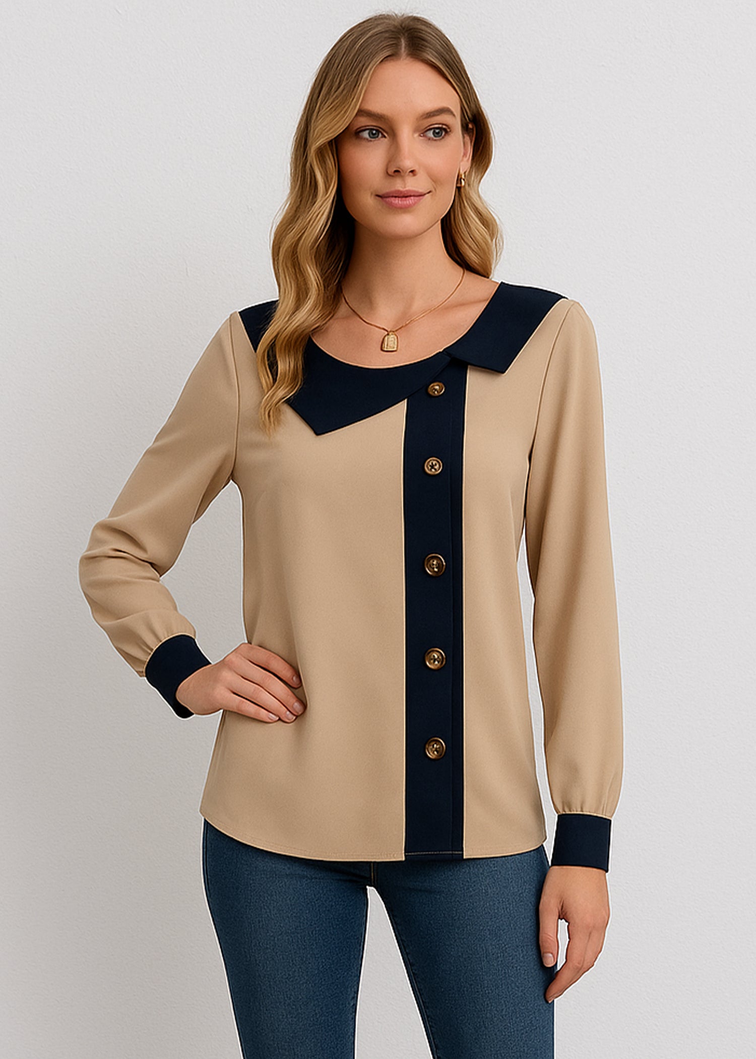 Dark Beige Sailor Collar Shirt